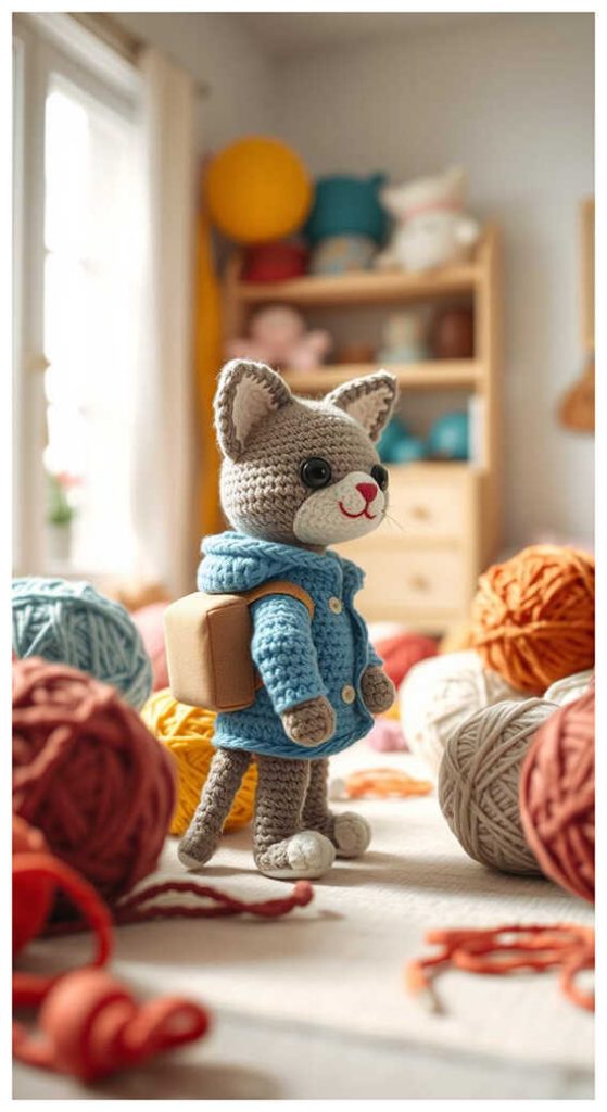 To make your own Bibi, you’ll need traditional amigurumi yarn, a Tulip Gold hook 4.5 (2.75mm), and a Soft Circle hook 3.00mm for those adorable galoshes. Cléa yarn is used to embroider the snout and eyebrows, adding extra character and charm. You can, of course, adjust materials and eye sizes to suit your style — Bárbara herself chose 15mm eyes to give Bibi that irresistibly “begging” look. At the end of the pattern, you’ll also discover more amazing amigurumi cat ideas that will inspire your next crochet creation. 🐱💛