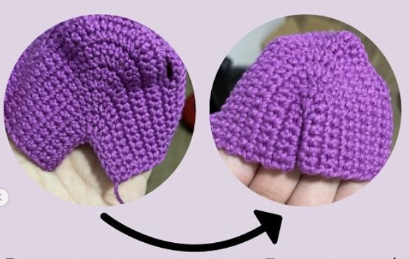 10– (9sc, inc) 2x, 1sc, 8sc, inc, 9, inc (44sc);
