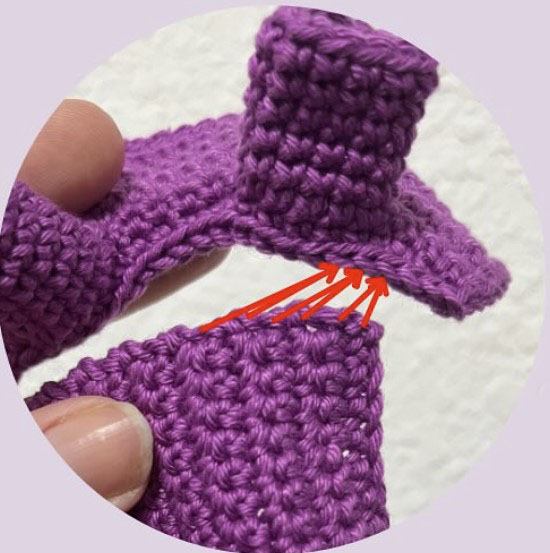 In the next rows we will have increases centered in the front of the legs – if you find it necessary, change the amount of sc before the increases.