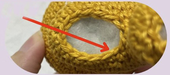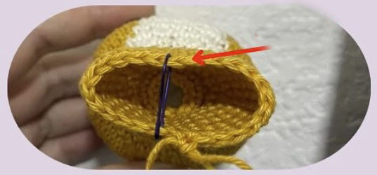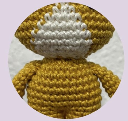 Before starting, stuff the body. Here the beginning of the row will be at the back of the body, as shown in the photo. Therefore, the amount of sc before the increases in the 5th row will change.