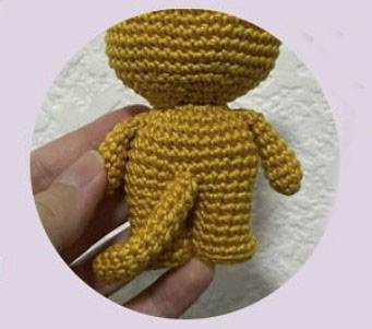You can use any yarn and needles you prefer. The size of the eyes is also up to you. I put these on because I wanted him to have a begging face. Using the materials mentioned, my mascot was approximately 13cm tall.