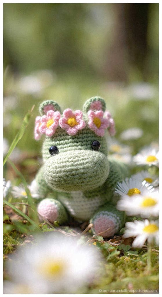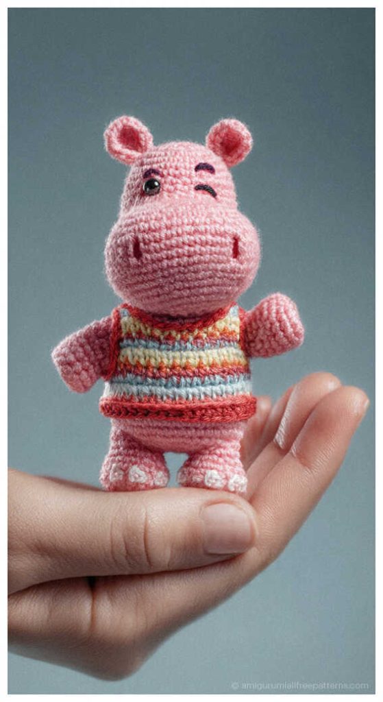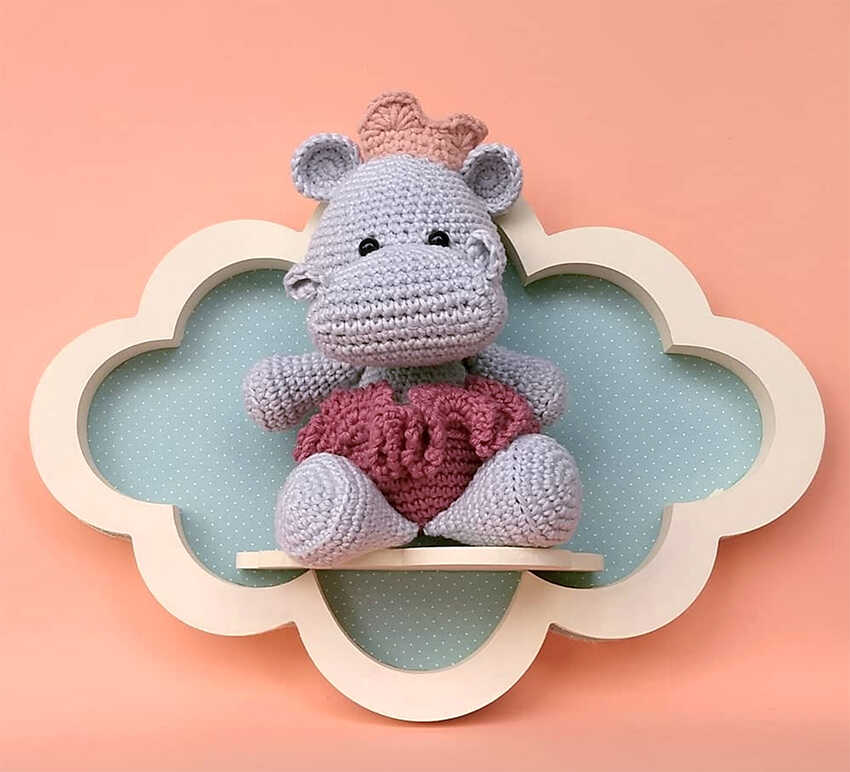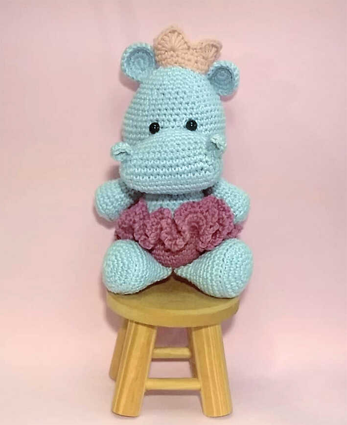 This free Bolly the Hippo amigurumi crochet pattern is designed by karlairedesbarbosa and features a sweet hippo with symmetrical ears, a rounded nose, and softly defined nostrils. The thick legs and arms gently taper toward the body, creating a balanced and elegant silhouette, while the ruffle skirt adds a lovely decorative detail. You will also find inspiring hippo amigurumi ideas at the end of the pattern, and we sincerely thank @oficialkarlabarbosa for sharing this delightful design.