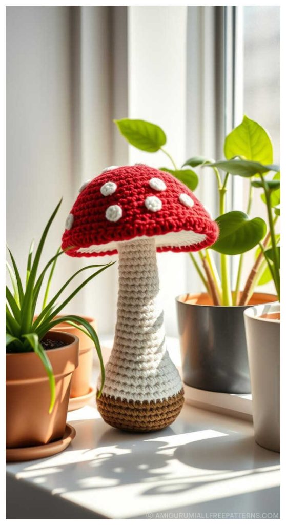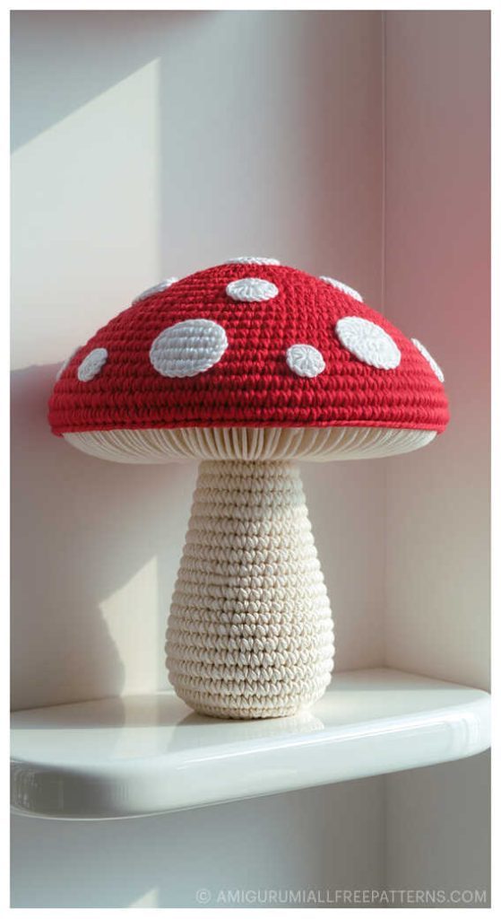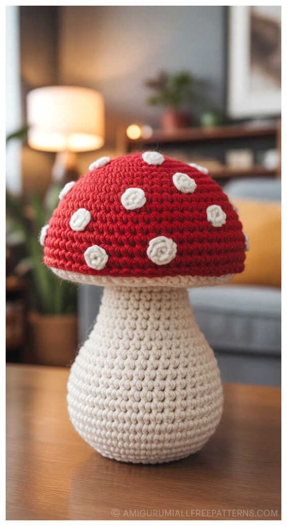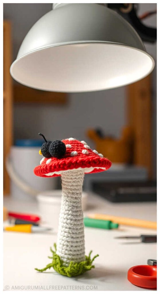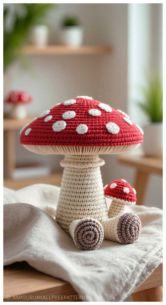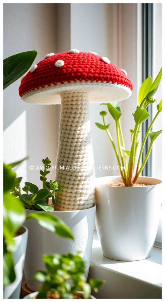 Crafted using YarnArt Jeans yarn (55% cotton, 45% acrylic, 50 g/160 m) and a 2.0 mm crochet hook, this pattern ensures a smooth, durable texture and vibrant color finish. You’ll also need 7 mm safety eyes, a tapestry needle, scissors, and fiberfill to bring your mushroom to life. Many thanks to Darya Neustroeva for this adorable and imaginative creation. Be sure to check the end of the pattern—there you’ll discover even more inspiring amigurumi mushroom ideas to continue your crochet journey!