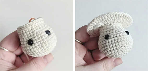 R 1: 48 sc. Add some fiberfill stuffing when you’re ¾ done with crocheting it on.