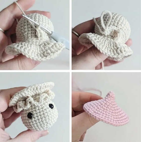 Insert safety eyes between R 10 and R 11 at the distance of 8 st from each other.