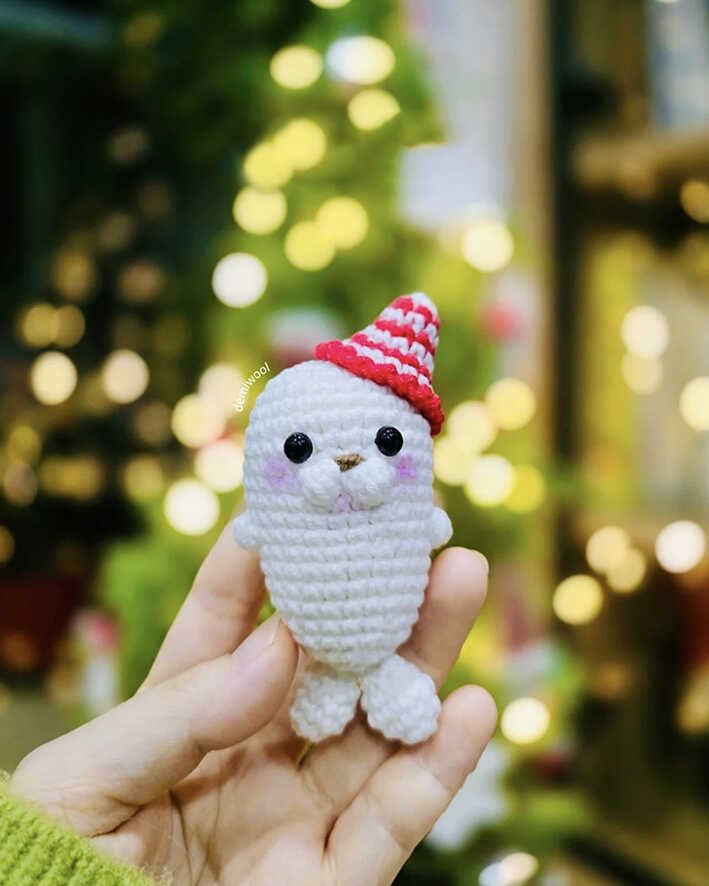 The pattern is designed using cotton yarn for clean stitches and clear definition, while different yarn choices can slightly change the texture. To complete the project, you’ll only need yarn, a suitable hook, fiberfill stuffing, and basic tools. At the end of the pattern, you’ll also find Christmas seal amigurumi ideas for festive color variations and styling inspiration. If you enjoy small seasonal animals, you may also like the mini penguin amigurumi, another charming project shared on our blog.
