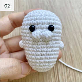• The BO stitches in R9 form the seal’s snout and the BOs in R12 form the seal’s arms.