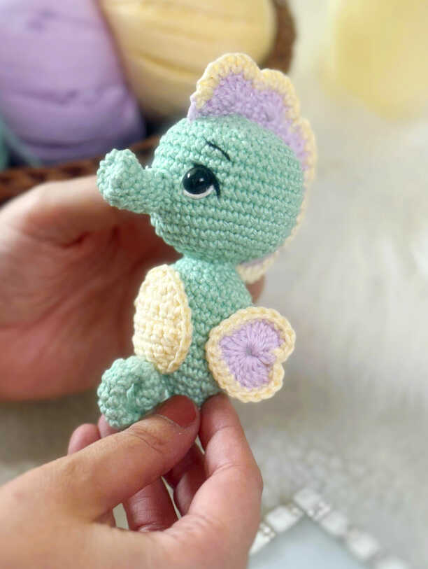 • Traditional amigurumi yarn in the colors neomint (5743), candy lilac (6006) and cream (1112)